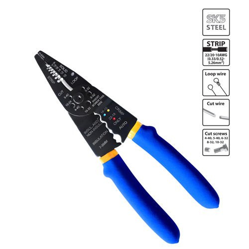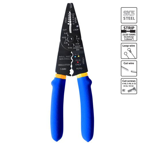Uniwersalny ściągacz izolacji S&R z zaciskarką konektorów i funkcją przycinania śrub 205 mm