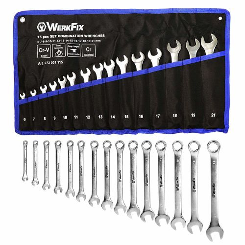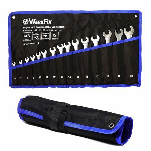 Zestaw kluczy płasko-oczkowych WerkFix w pokrowcu 15 szt.